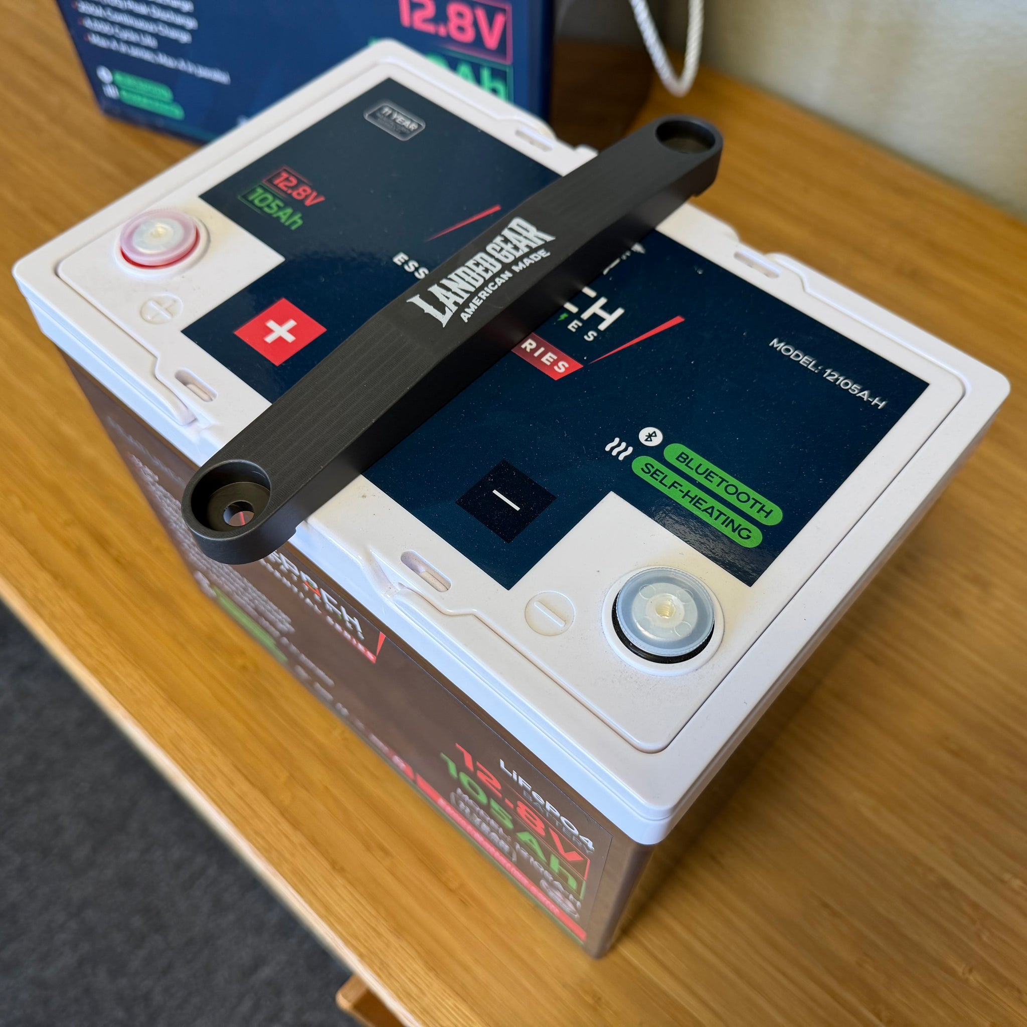 Secure your stock AGM or Epoch 105Ah LiFePO4 upgraded batteries with the Landed Gear Aluminum performance model. Replace the bent and rusty, thin steel one that came with your van. CNC-Machined for 6061 Aluminum, hard anodized clear (matte grey look) and laser-engraved with the Landed Gear logo. Available by the each or a discounted pair. Note: Some models use one, two, or zero battery tie downs from the factory. Some use clamping cages or a mix.